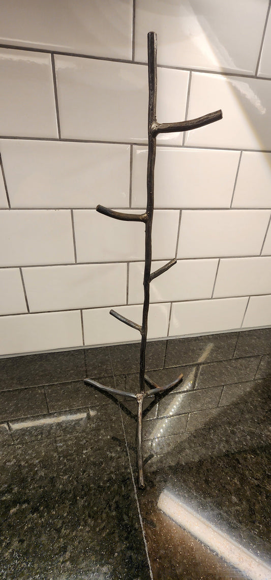 Hand-Forged Coffee Mug Tree – Rustic Steel Mug Holder for Countertop or Shelf, Blacksmith Made Kitchen Organizer