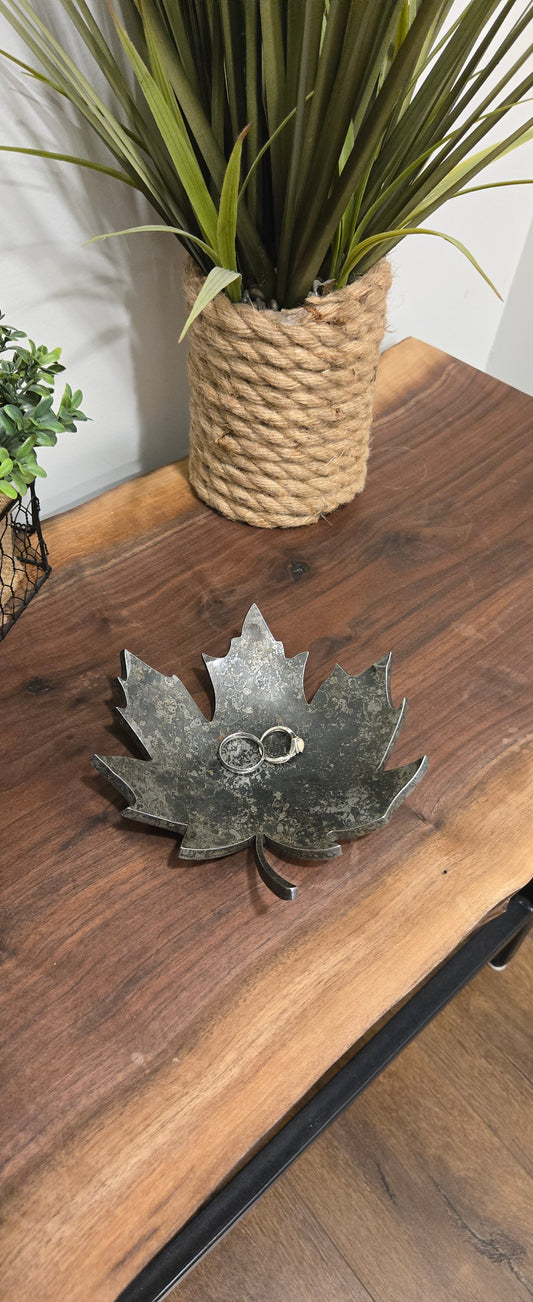 Hand-Forged Maple Leaf Catchall Bowl – Rustic Metal Tray for Keys, Rings & Decor