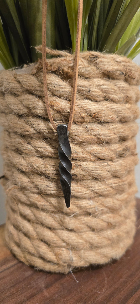 Beautiful Hand Forged Pendant Necklace - Rustic Blacksmith Jewelry with Simple Twisted Pendant (A)