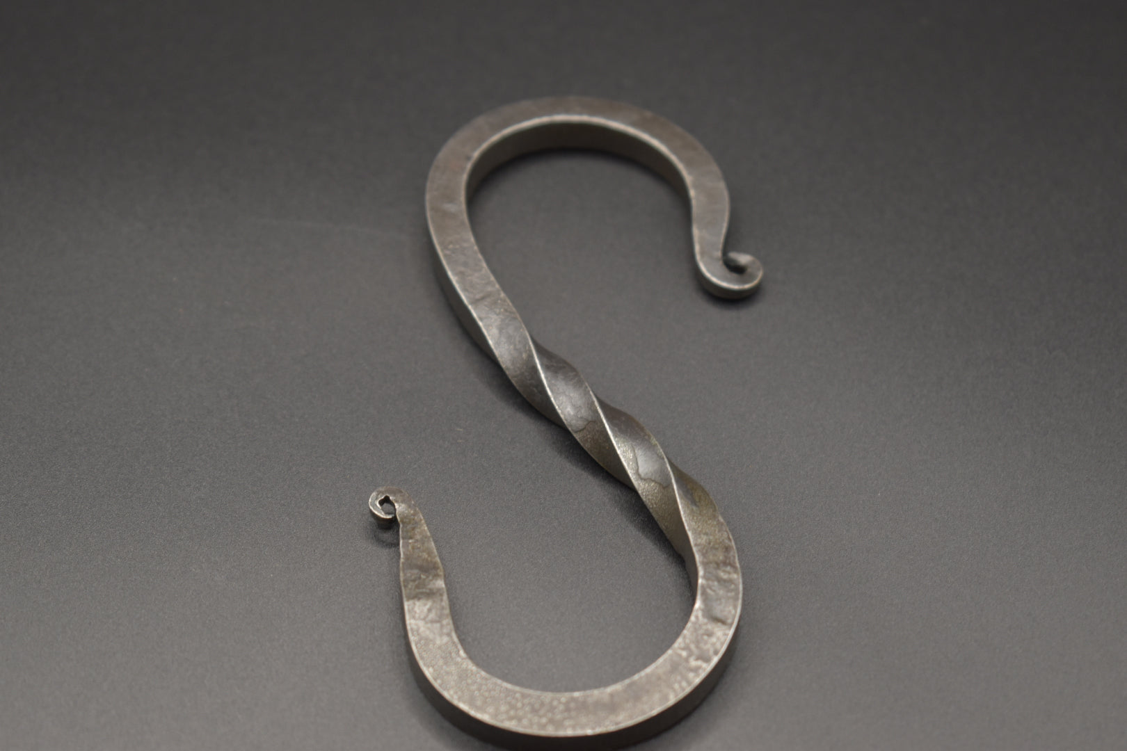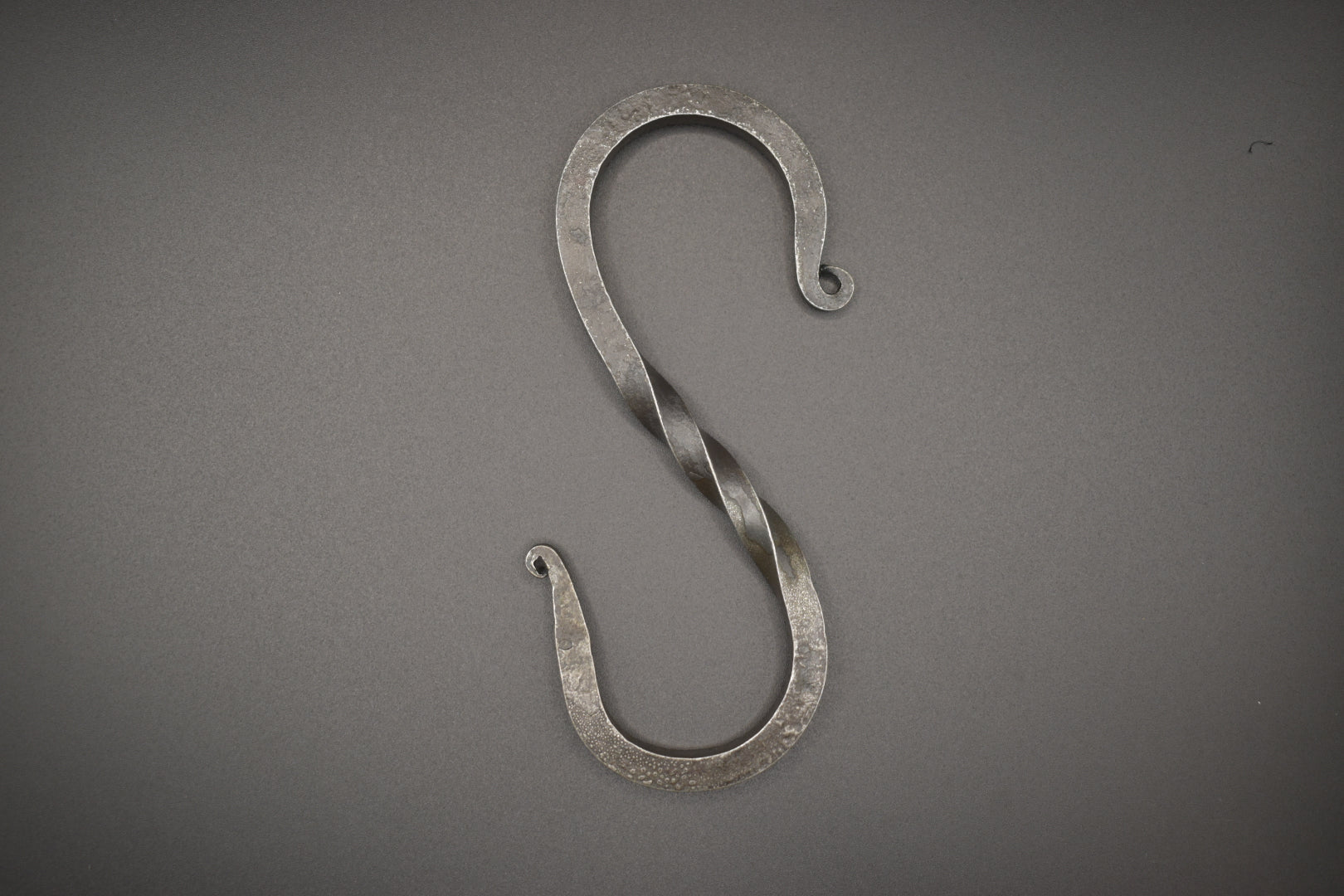 Blacksmith hand forged S Hook with endless possibilities. Has a beautiful twist in the middle and scrolled ends.