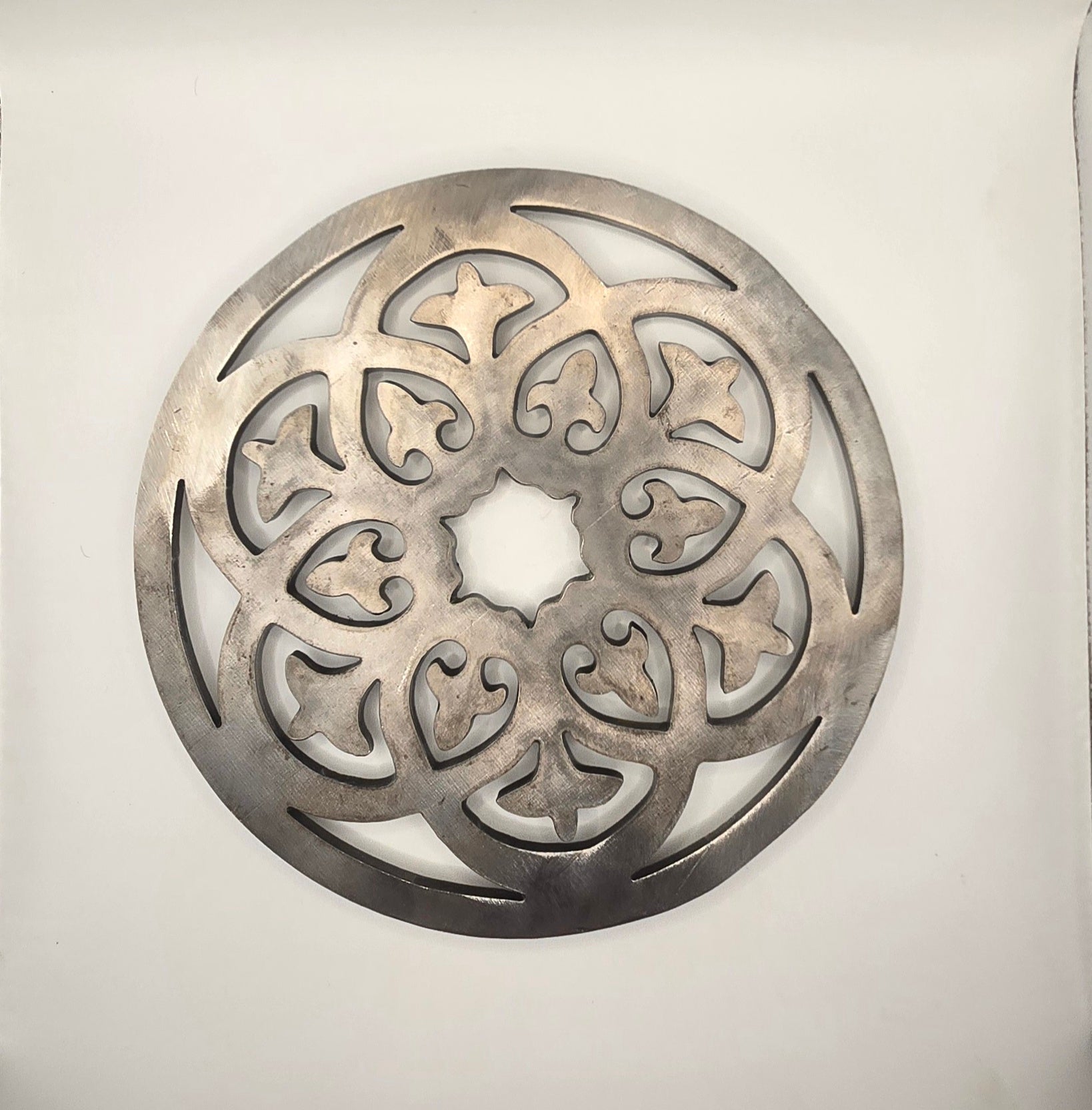 Cut on our CNC plasma table, each trivet is carefully deburred and hand-finished in our Georgia fabrication shop. The design is inspired by gothic window rosettes—making it an ideal blend of industrial strength and artistic design.